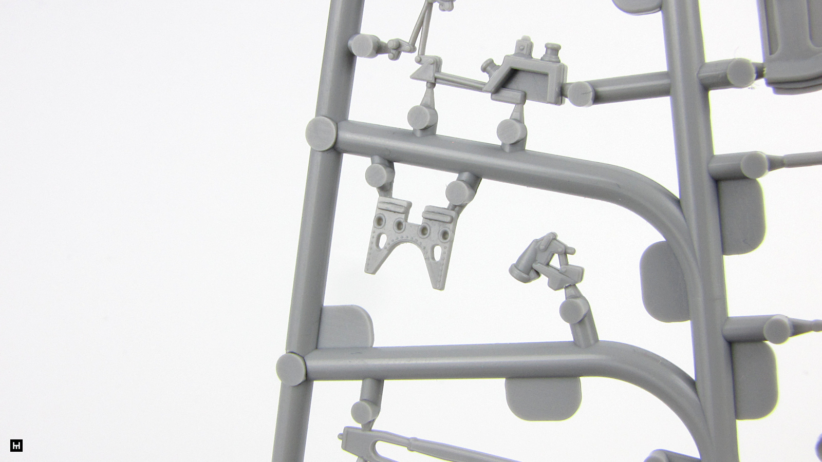 At the other end, behind a pretty decent pilot's seat, goes the frame with additional armour. This time, the glass panel mounted behind the pilot's head has not been forgotten – it is on a transparent sprue, of course.
